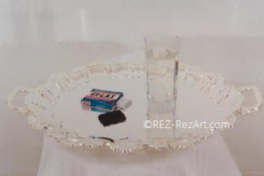 Displayed as a part of his one-man show "Chocolate Covered World" Plaster Paris and acrylic paint